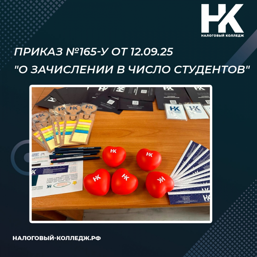 Приказ №165-у от 12.09.25 "О зачислении в число студентов"