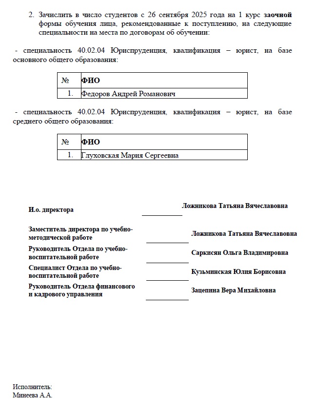 Приказ №174-у от 26.09.25 "О зачислении в число студентов"