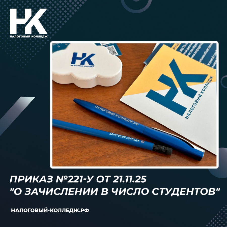 Приказ №221-у от 21.11.25 "О зачислении в число студентов"