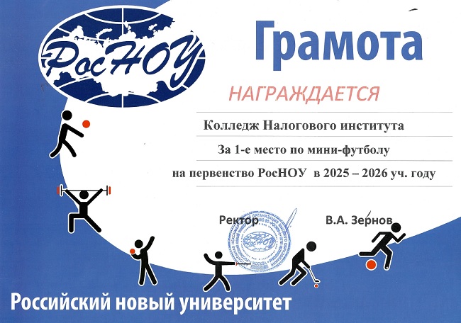 В рамках взаимного сотрудничества с РосНОУ в турнире по мини-футболу среди юношей за команду Налогового института выступали студены Налогового колледжа.