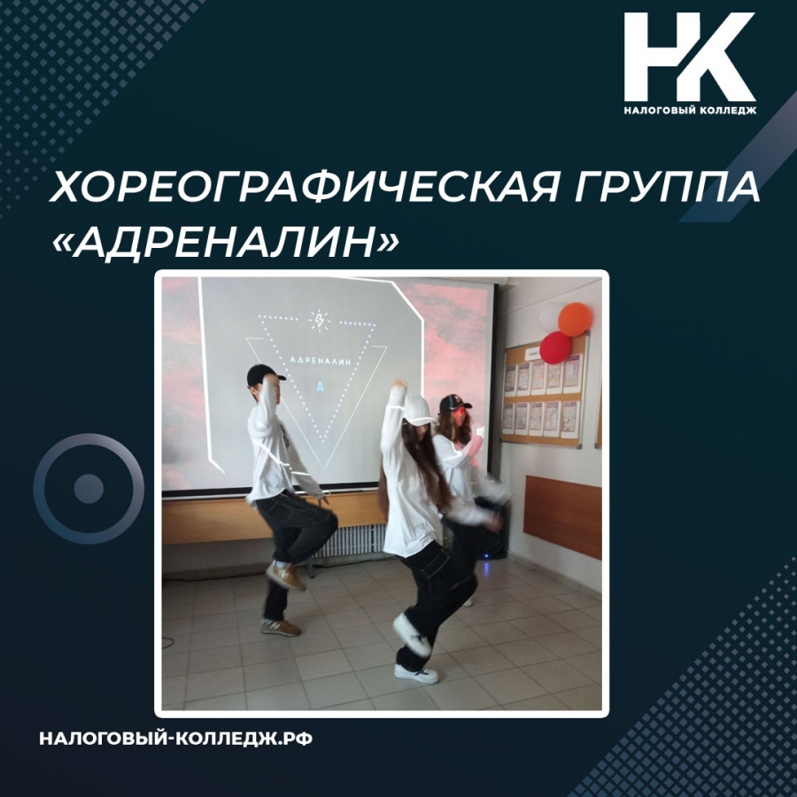В стенах Налогового колледжа вот уже несколько лет существует творческая хореографическая группа «Адреналин». Руководит группой студентка 4 курса специальности Экономика и бухгалтерский учет (по отраслям) Спатару Юлиана.