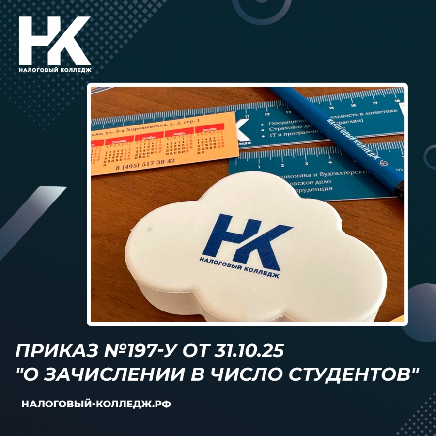 Приказ №197-у от 31.10.25 "О зачислении в число студентов"