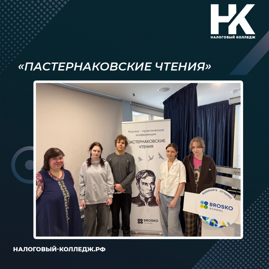 Студенты Налогового колледжа традиционно приняли участие в работе ежегодной научно-практической конференции «VII Пастернаковские чтения. «Отражение и осмысление судьбы России в литературе и искусстве Серебряного века»», организованной АНО общеобразовательная «Гимназия Броско».