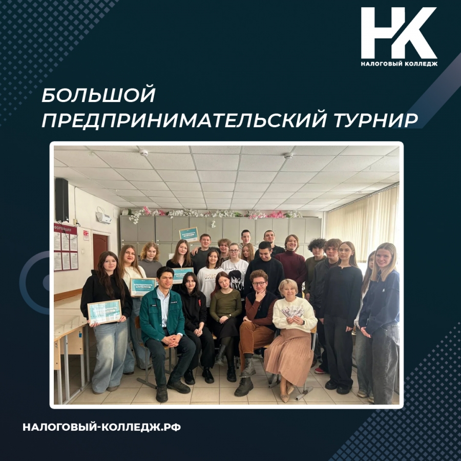 В Налоговом колледже прошел "Большой предпринимательский турнир", организованный в рамках программы развития молодежного предпринимательства "Я в деле". Этот масштабный проект реализован Благотворительным фондом «Капитаны» при содействии Минобрнауки России, Минпросвещения России и Федерального агентства по делам молодежи.