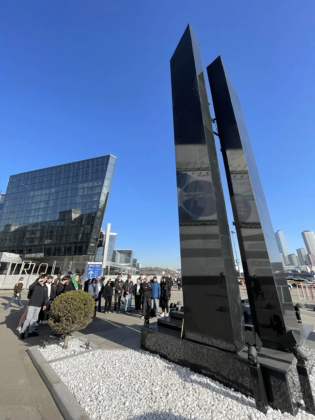 Перед осмотром экспозиции группа почтила память жертв теракта 2024 года в Crocus City Hall: у мемориальной стелы прошла минута молчания.