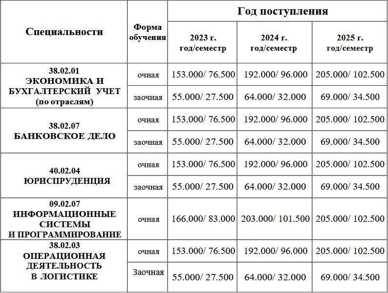 Стоимость обучения в 2026-2027 учебном году для студентов